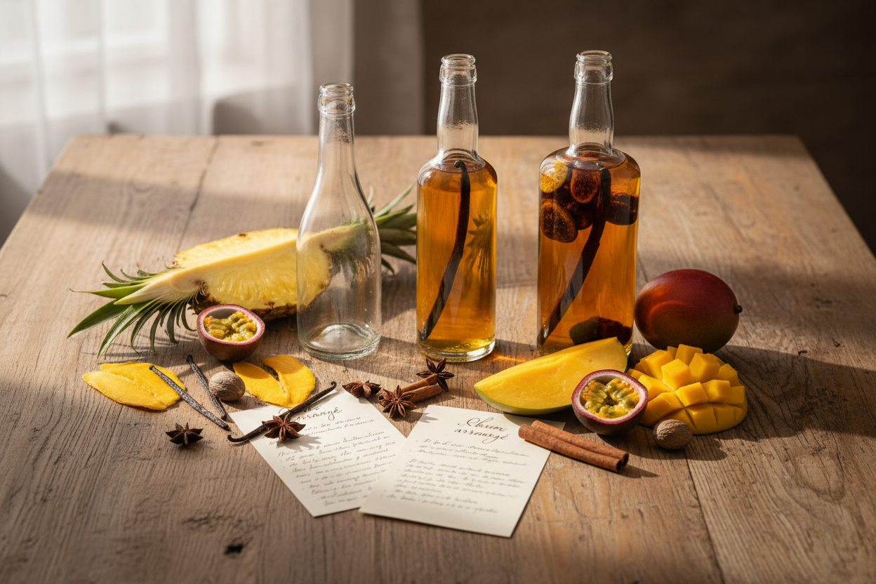 Apprenez pas à pas comment préparer votre rhum arrangé maison. Ce guide pratique couvre les techniques de macération, le choix des fruits et épices, et les conseils pour un résultat aromatique parfait.